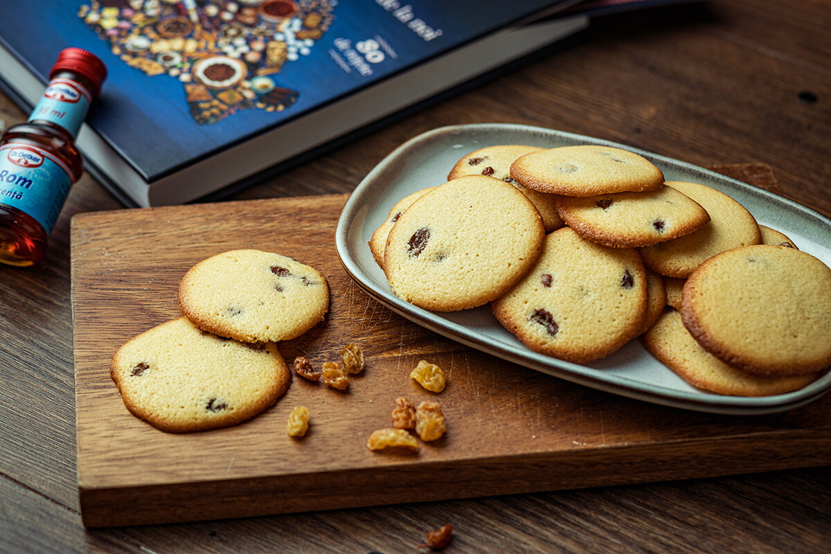 Se amestecă bine untul cu zahărul să fie ca o cremă. Se adaugă pe rând ouăle și vanilia. Se încorporează făina. Se adaugă stafidele stoarse bine.