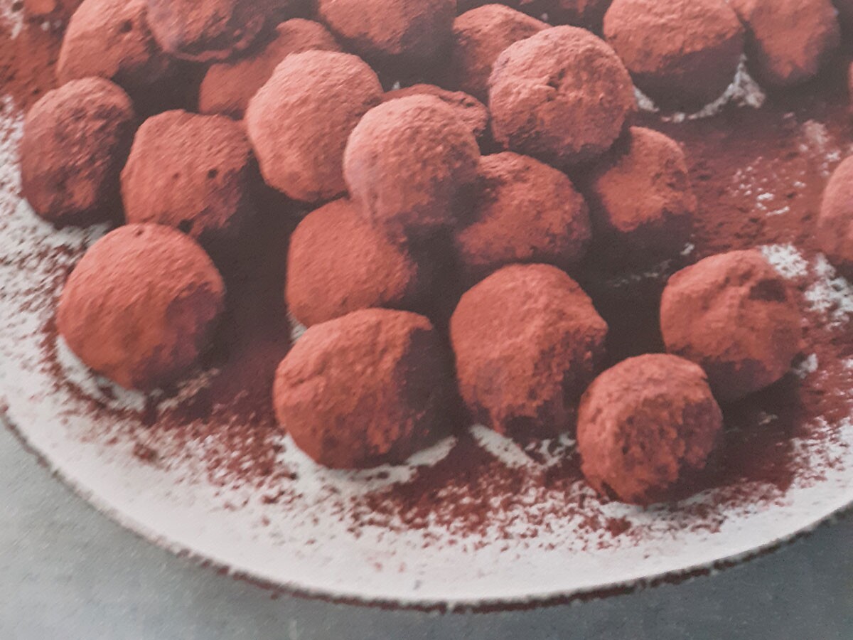 Lăsăm să se răcească apoi facem cu mâna biluţe din acest amestec, le dăm prin cacao pudră.